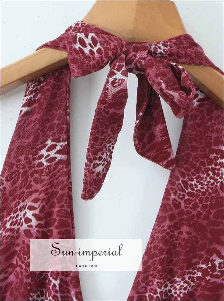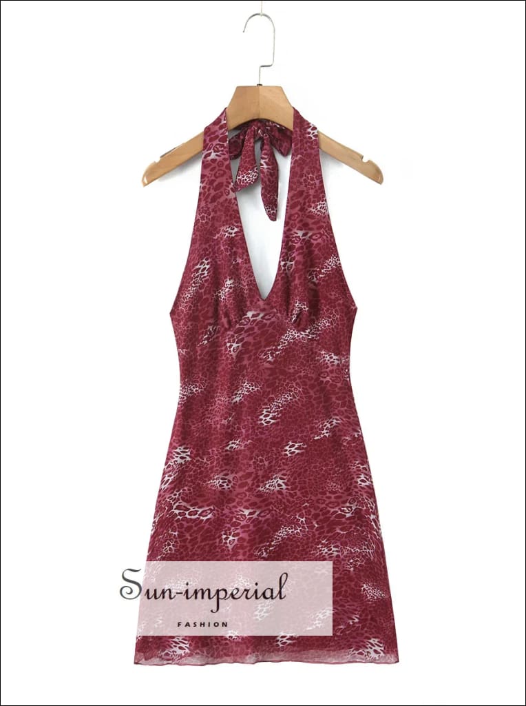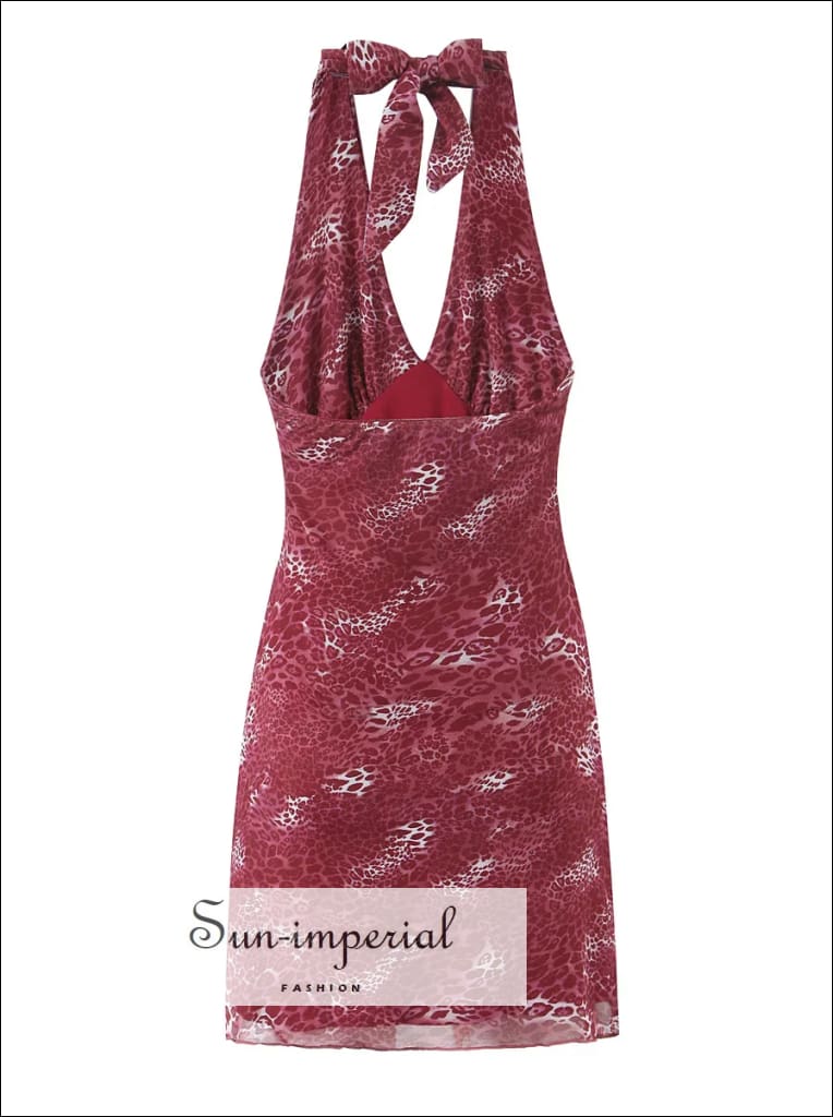 This leopard print mini dress features a lightweight mesh fabric with a flattering halter neckline and adjustable tie bow detail. Designed with a slim fit through the waist and a softly contoured silhouette, it offers a modern, statement look while remaining comfortable and wearable.