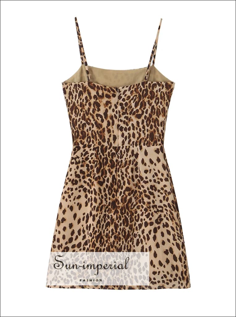 This leopard print mini dress features a lightweight chiffon fabric with a modern slash neckline and slim sling straps. Designed with a defined waist, the silhouette flows into a soft A-line shape that offers movement and balance. The open back adds a clean, minimal finish while keeping the overall look refined.