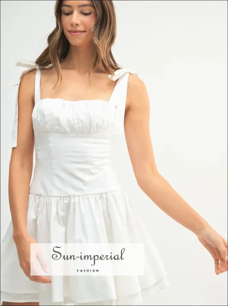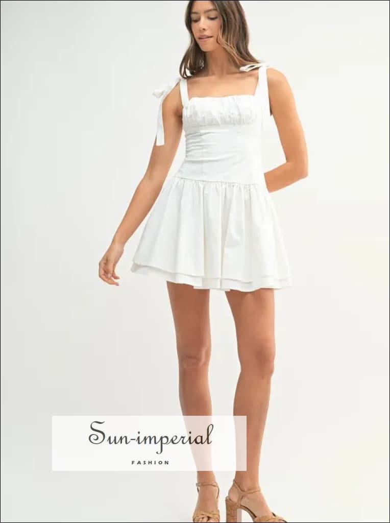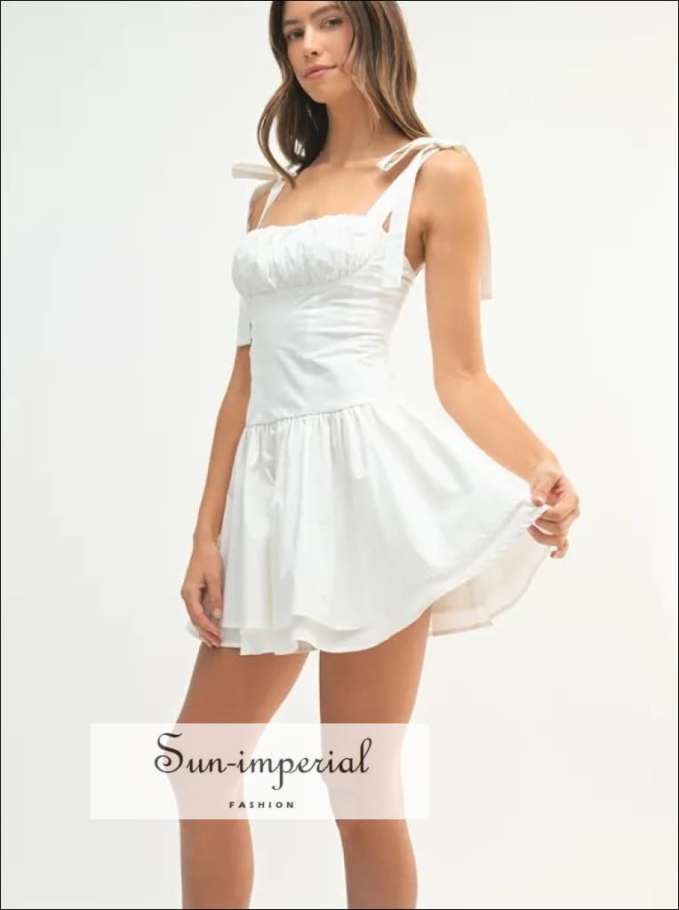 A shoulder tie corset panel mini dress is a flirty and stylish dress featuring shoulder ties and corset panel detailing. This mini dress is designed to accentuate the waist and create a flattering silhouette. The shoulder ties add a feminine touch and can be adjusted for a custom fit. The corset panel adds structure and a touch of glamour to the dress, making it a trendy choice for parties or special occasions. Pair this dress with heels and simple accessories for a chic and fashionable ensemble.