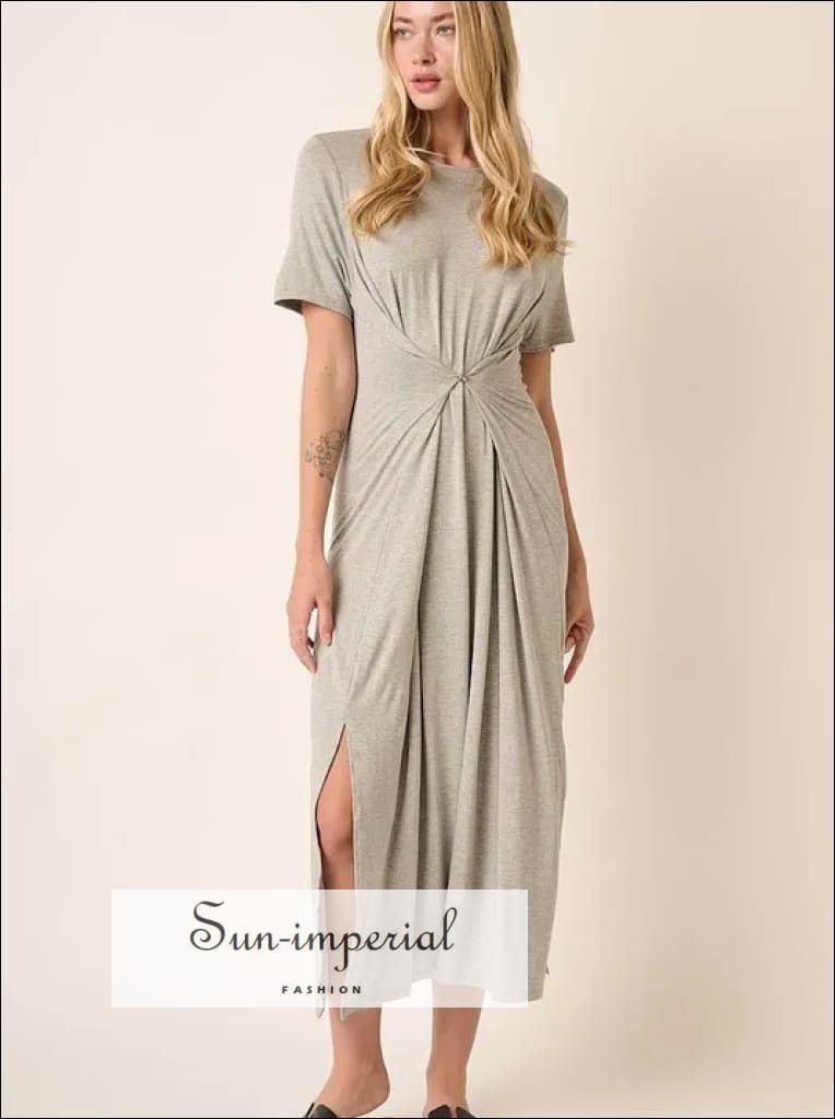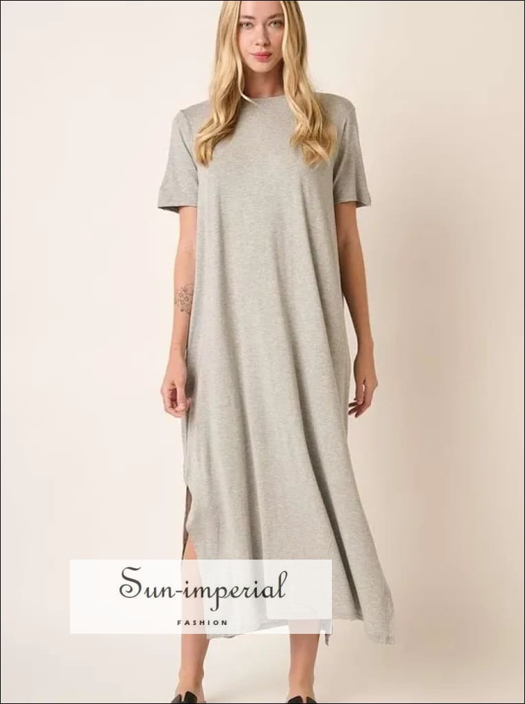 The Side Slit Round Neck Short Sleeve Dress is a versatile and modern option for a stylish and comfortable outfit. Featuring a classic round neckline and short sleeves, this dress offers a casual yet chic look. The side slits add a touch of flair and movement to the outfit, making it perfect for everyday wear or casual events. Pair it with sneakers or sandals for a relaxed vibe, or dress it up with heels for a more polished appearance.