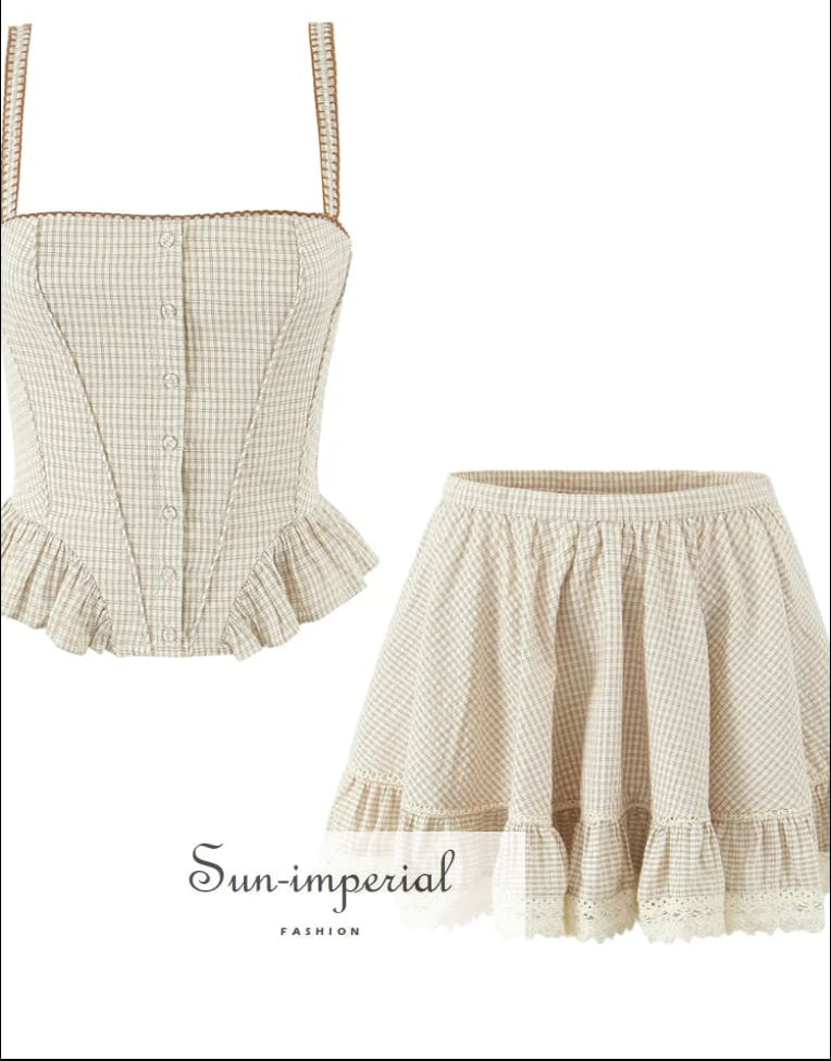 Plaid Cotton Tank Top & Ruffle Mini Skirt Set