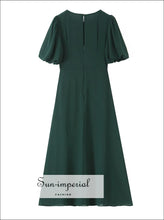 Women’s Dark Green Short Puff Sleeve Midi Dress Sun-Imperial United States